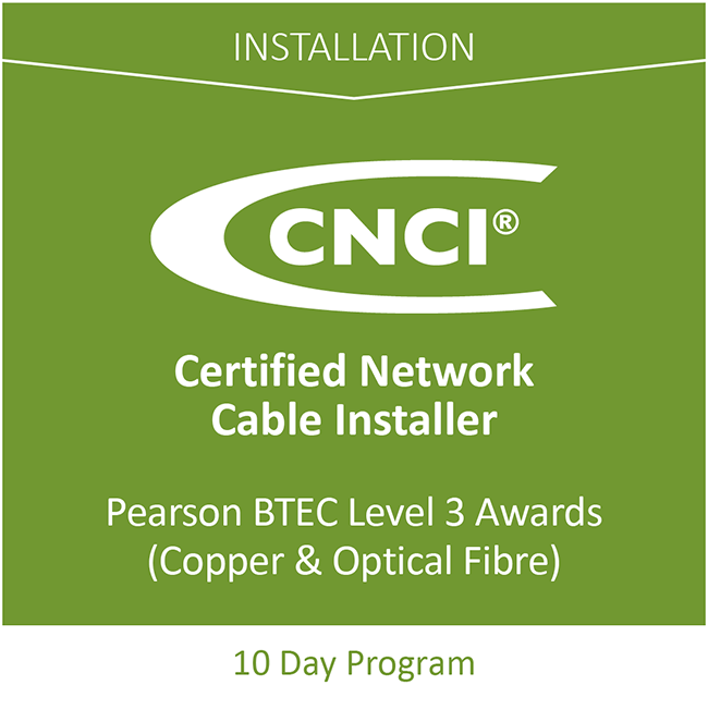 The CNCI® is a ten-day course covering copper and fibre cabling installation, testing, and termination. It blends theory and hands-on practice, meets industry standards, and is recognised by manufacturers and contractors. CNCI® is widely required for job roles, contracts, and warranty accreditations, ensuring a right-first-time installation approach.